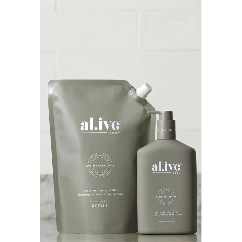 Refresh availabilityThe al.ive body Green Pepper & Lotus Hand & Body Lotion contains a luxurious blend of naturally derived ingredients, fortified with essential oils and native botanical extracts.