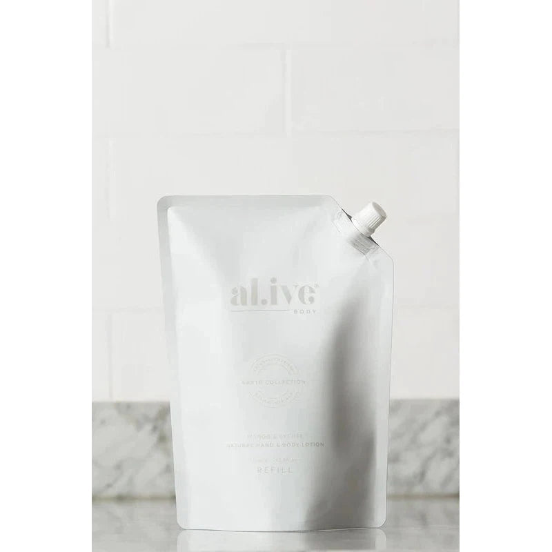 Our 1ltr refill pouches are designed to refill your existing Alive body® bottles whilst helping to reduce the amount of plastic ending up in landfill. Our refill pouches use 88% less plastic and refill your 500ml Alive body® bottle twice.