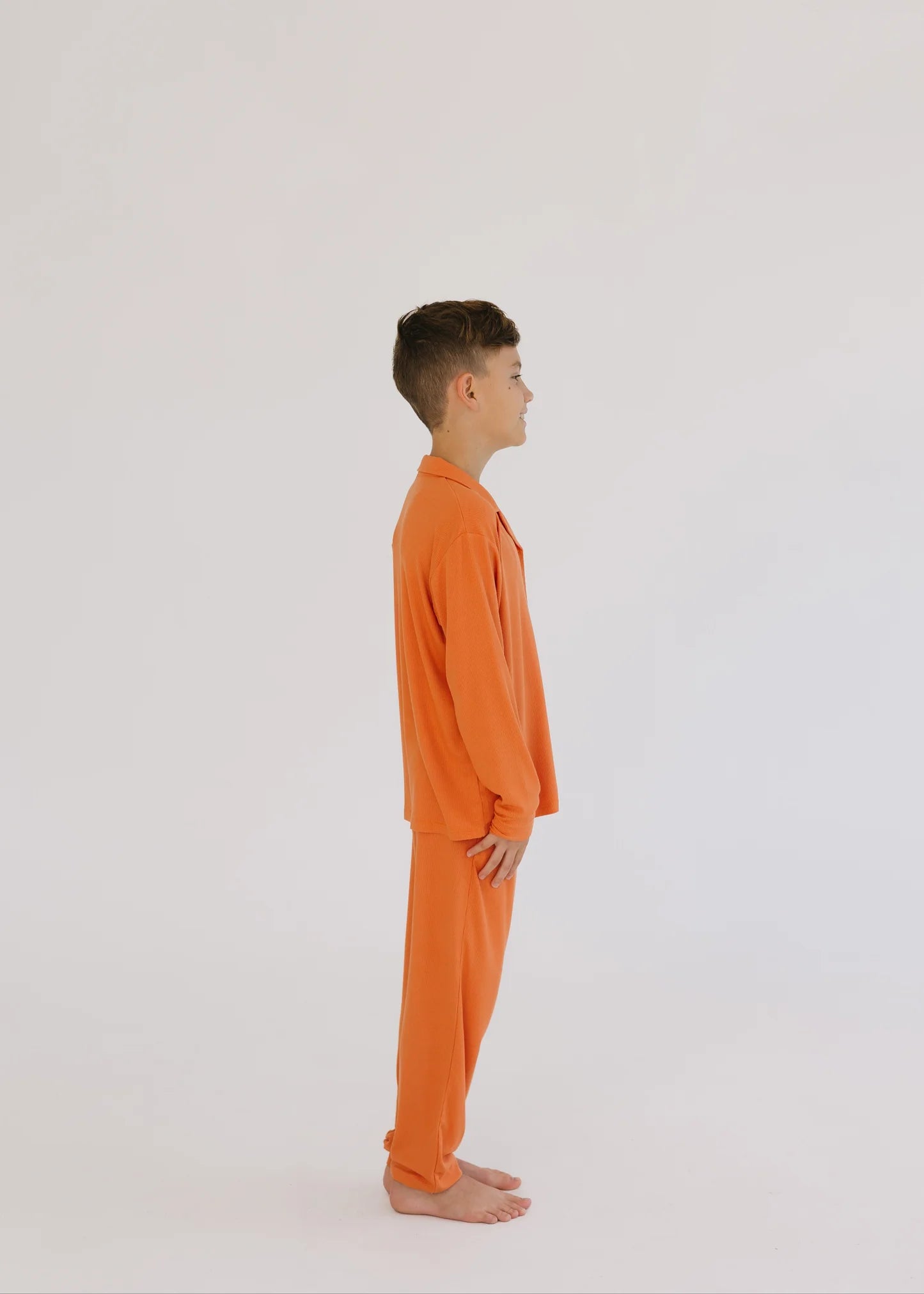 Designed to keep your children warm and cozy all night long. Featuring an adjustable secured drawstring pant, handy pockets and cuffed arms and legs. This pyjama set offers an elevated level of comfort for a restful sleep.
