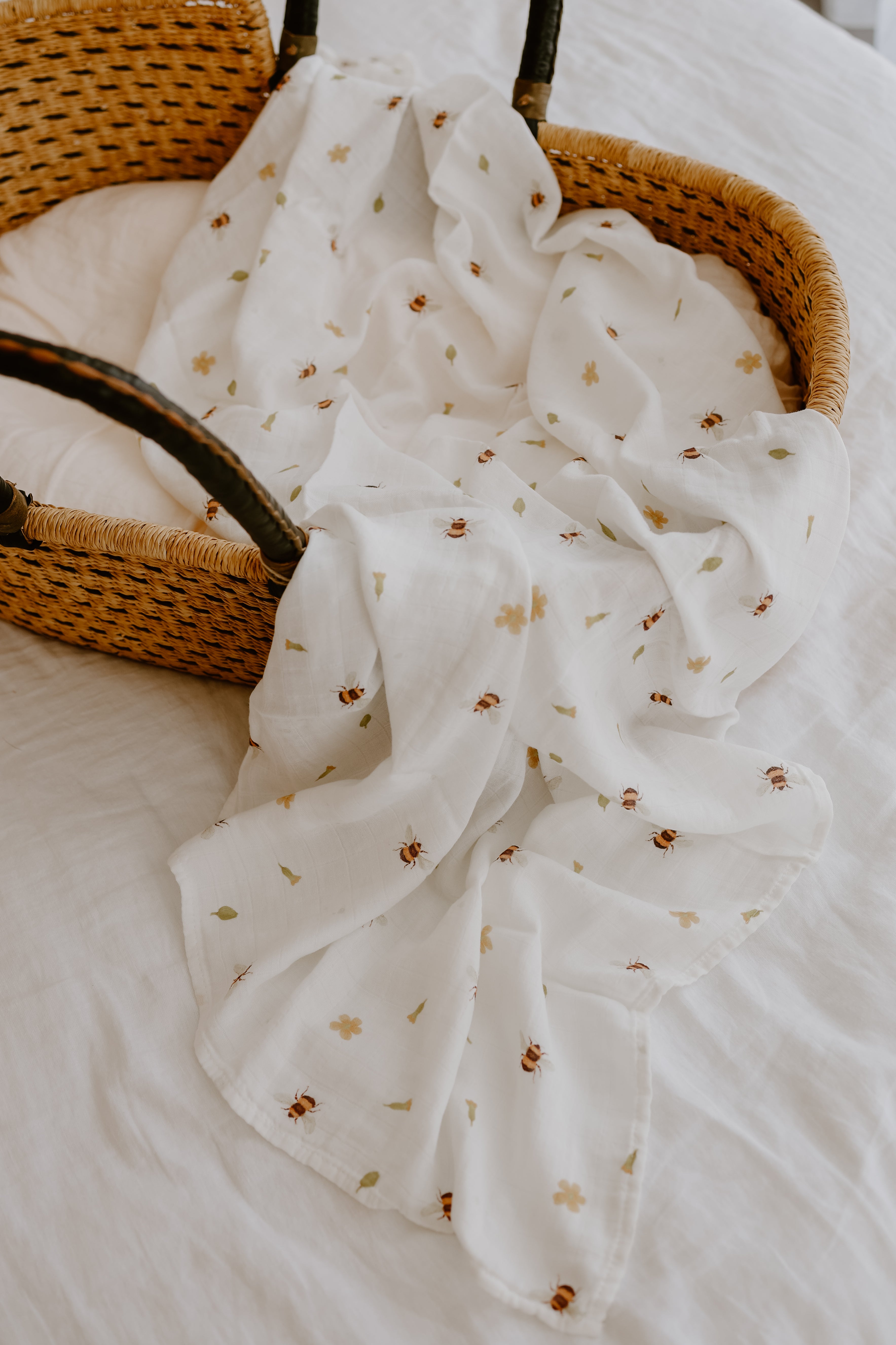 Refresh availabilityWrap your little one in the soft, breathable comfort of our The Bees Muslin Swaddle. Featuring a sweet spring bee print, this swaddle is perfect for adding a touch of warmth and joy to your baby's essentials. Designed with love and crafted from a luxurious cotton bamboo blend, the Bees Muslin Swaddle ensures your baby stays snug and comfortable.