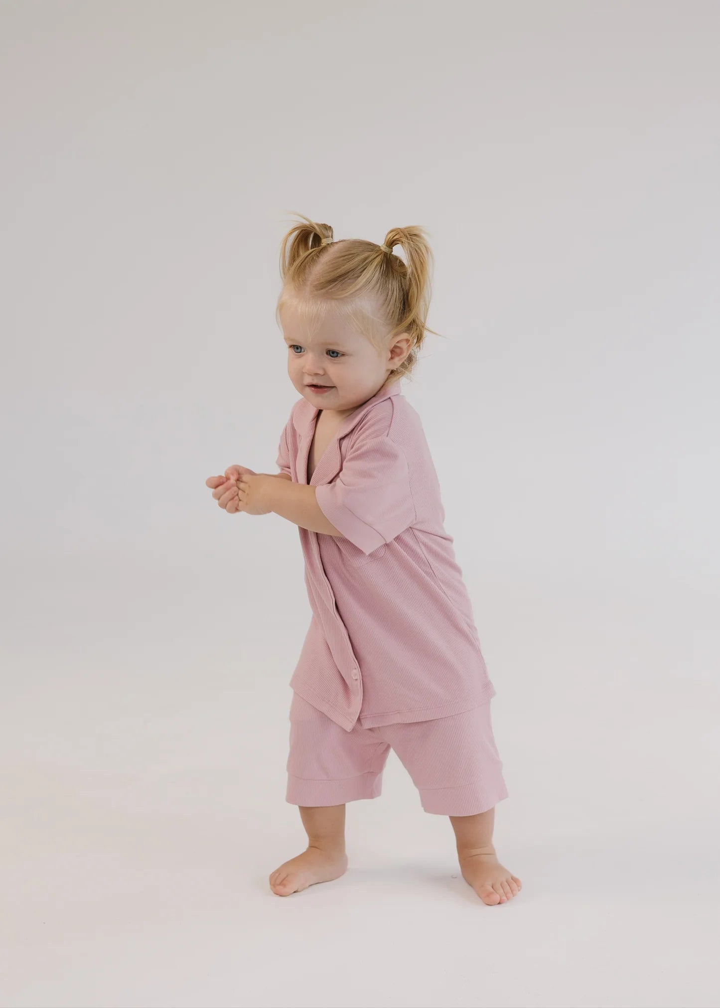 A short sleeve luxurious buttery-soft pyjama set made from durable ribbed modal fabric.