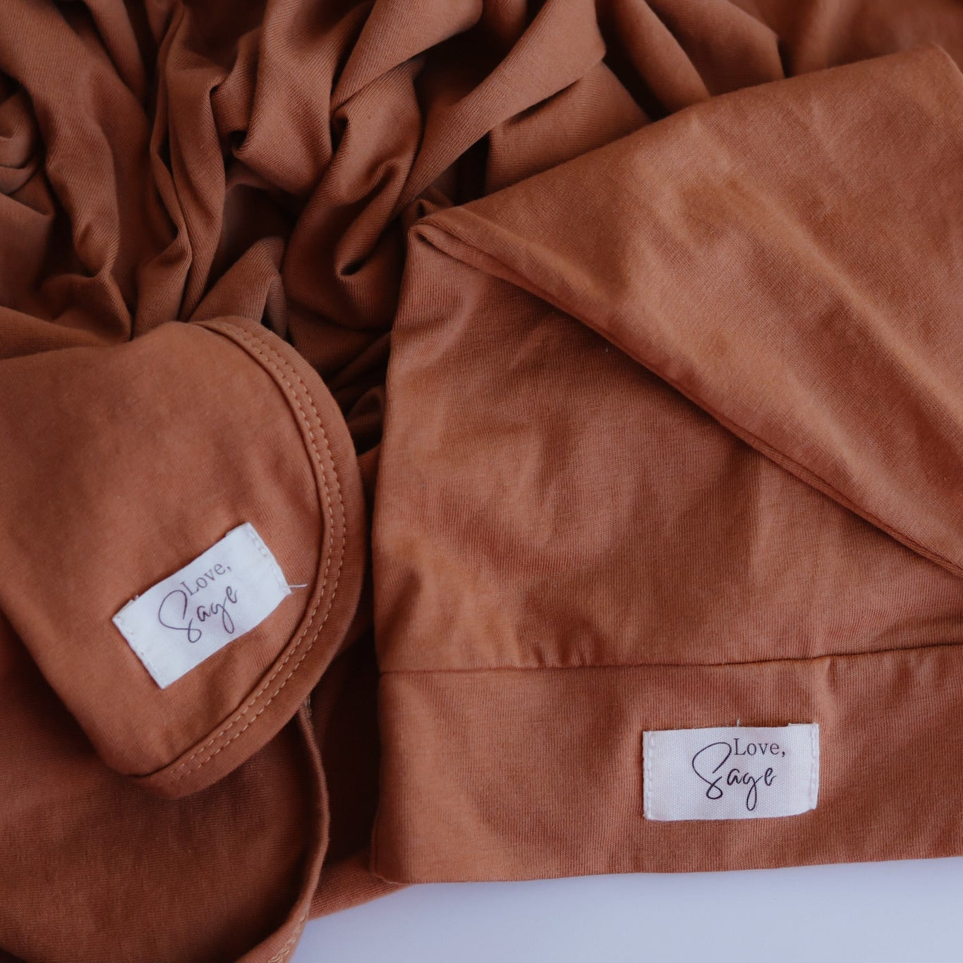 Refresh availabilityWrap your newborn in the loving comfort of the Clay Swaddle & Hat Duo, crafted from soft, breathable jersey cotton. Gentle on delicate skin, this set keeps your little one cozy while allowing airflow to prevent overheating. With its charming old-fashioned style, it's a timeless essential for every baby’s wardrobe.