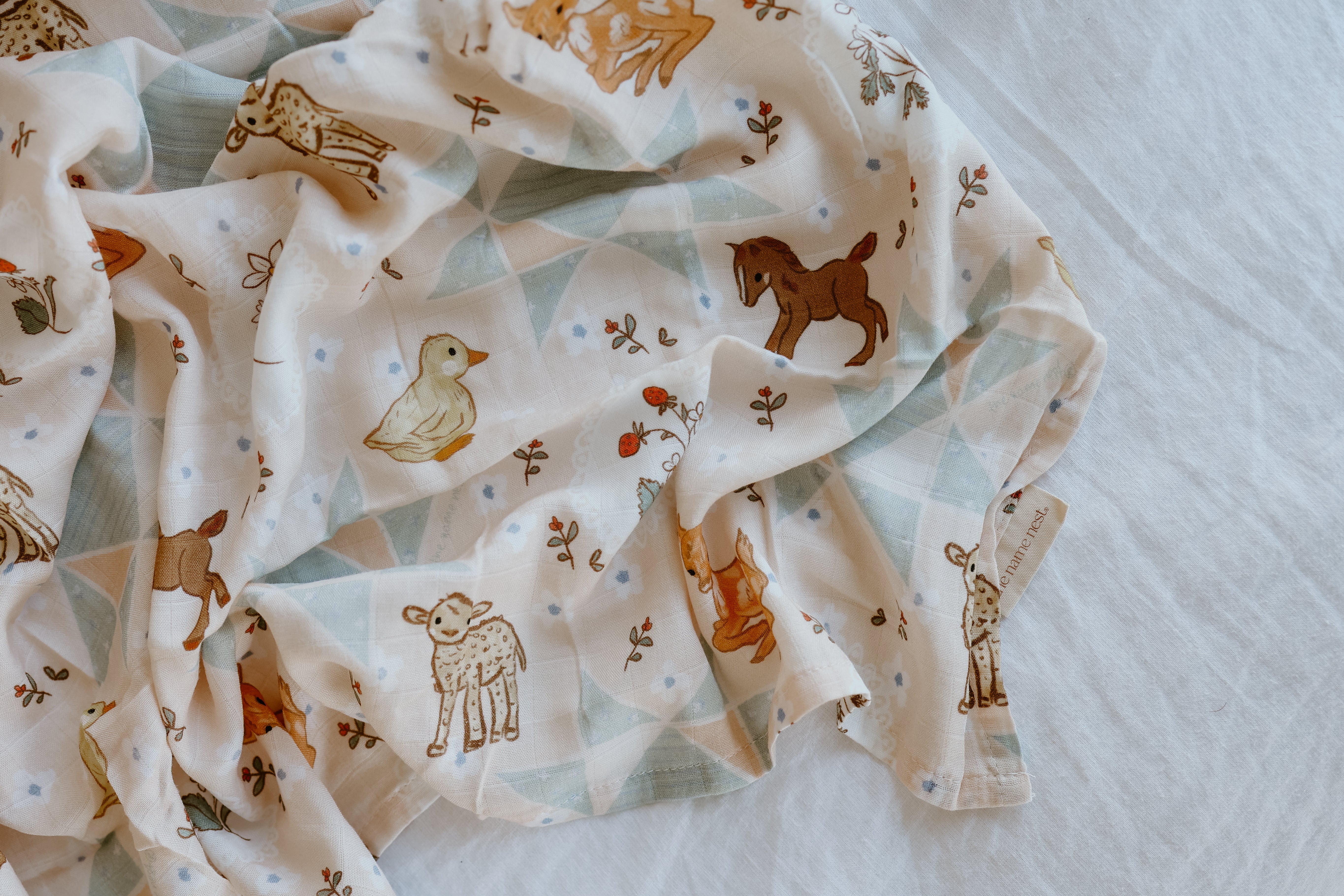 Our beautifully buttery soft and lightweight swaddles make the most beautiful wrap for your little one. Perfect for wrapping baby, using in the stroller or as a thin extra layer during daytime naps. Featuring our very own exclusive name nest artworks, these wraps will become your favourite nursery piece.