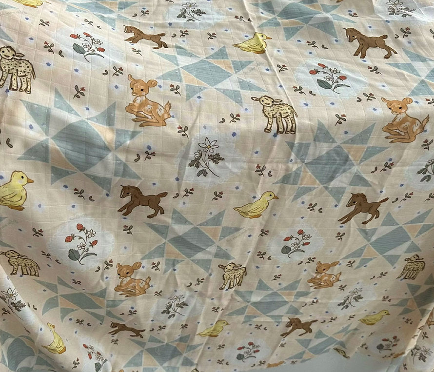 The swaddle is adorned with our original and exclusive pattern and measures 120cm x 120 cm.