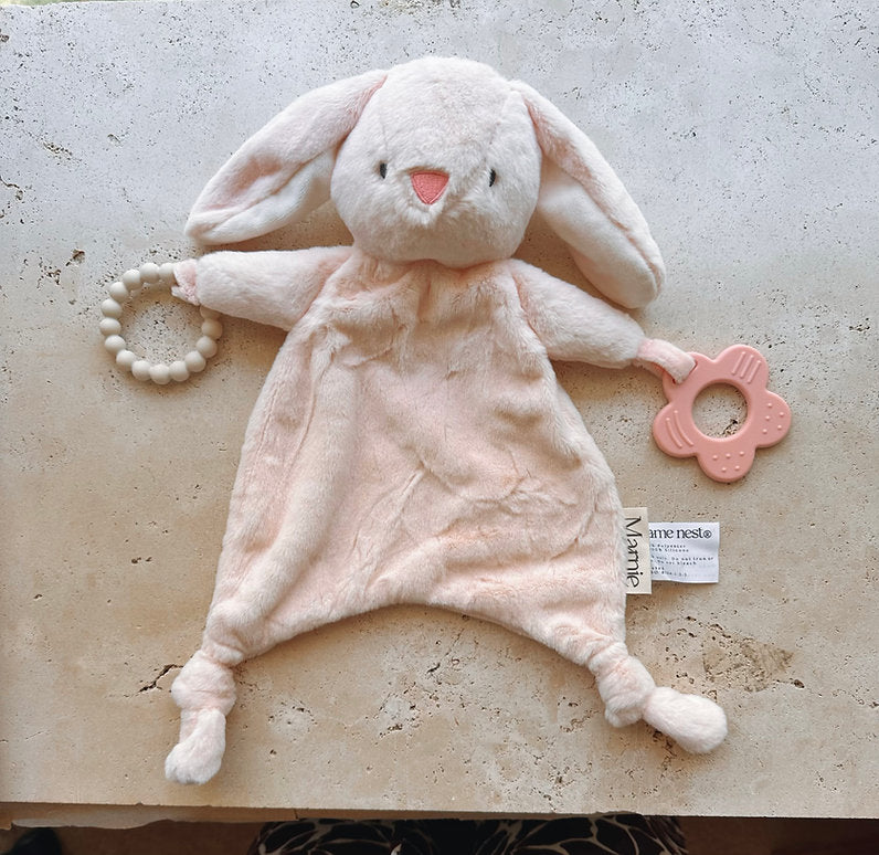 the name nest bunny comforter and teething toy, Marnie is here!!