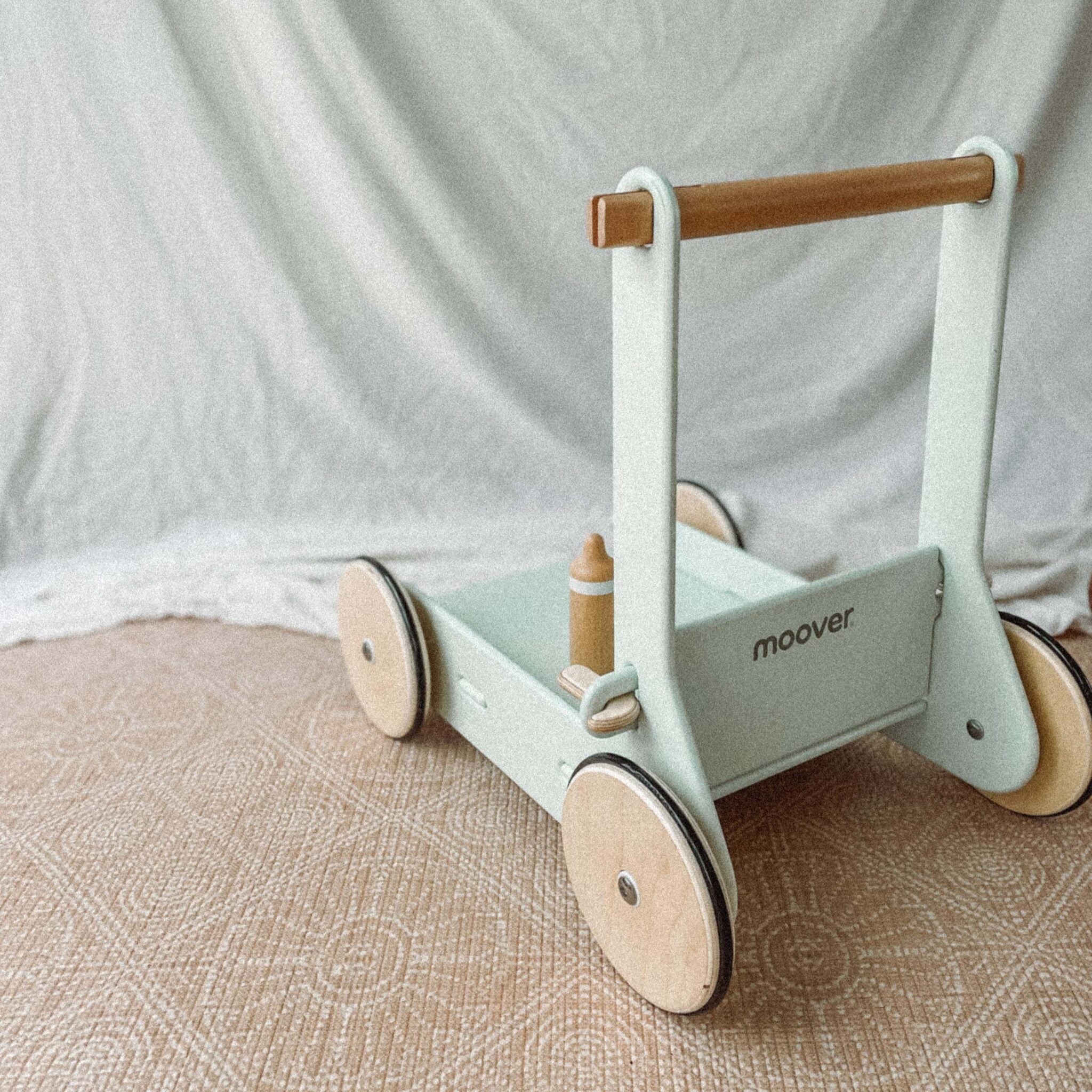 The Baby Walker comes flat packed and is easily assembled without tools thanks to the unique click system developed by Moover Toys.